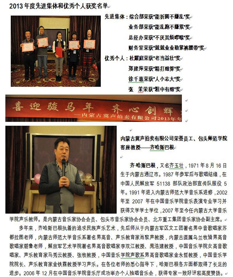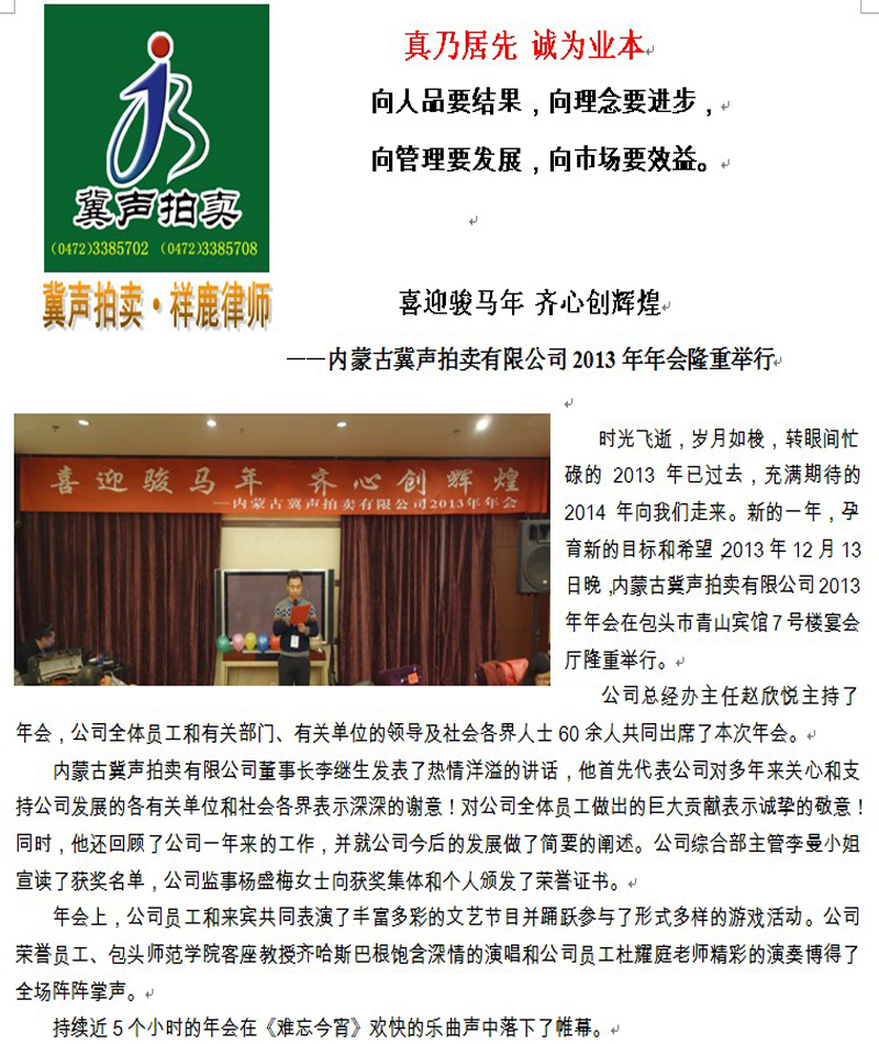 喜迎駿馬年 齊心創(chuàng)輝煌——內(nèi)蒙古冀聲拍賣有限公司2013年年會隆重舉行
