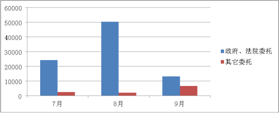7月8月和9月政府、法院委托成交額仍然是主要來源。其他委托在9月份增幅明顯。