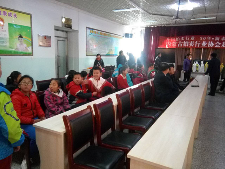 清水河逸夫小學(xué)活動現(xiàn)場 早在梁啟超《少年中國說》中就有一句話“少年強(qiáng),則國強(qiáng)”。可愛的孩子們是我們的未來,也非常契合本次拍賣周的主題“30年,新未來”。我們拍賣行業(yè)正值青春年少,新的未來新的希望!明天正等待我們拍賣人去創(chuàng)造更多的輝煌。正如這些花一樣的孩子們! 現(xiàn)場學(xué)生代表 本次慈善義捐活動由內(nèi)蒙古拍賣協(xié)會主辦,內(nèi)蒙古拍賣協(xié)會秘書處負(fù)責(zé)實施,內(nèi)蒙古拍賣行業(yè)協(xié)會會長李繼生、內(nèi)蒙古拍賣行業(yè)協(xié)會秘書長賈世軍、協(xié)會副會長趙軍、協(xié)會副會長王志江、協(xié)會理事哈斯,協(xié)會會員郭素英、張哲,協(xié)會副會長單位代表李艷林、協(xié)會副會長單位代表包娜及清水河縣教育局的有關(guān)領(lǐng)導(dǎo)和逸夫小學(xué)的校長和書記參加了本次捐贈活動。本次慈善捐助活動共向清水河逸夫小學(xué)捐贈了價值一萬八千五百六十元的物品,用于學(xué)校的日常教學(xué)和孩子們的學(xué)習(xí)。通過這次慈善捐助活動不僅增強(qiáng)了我們拍賣行業(yè)的責(zé)任感,也讓更多的人了解了拍賣行業(yè)。 呼市電視臺、北方新報、內(nèi)蒙古晨報、內(nèi)蒙古晚報、攝影記者主流媒體跟蹤并進(jìn)行了報道。 內(nèi)拍協(xié)領(lǐng)導(dǎo)及部分企業(yè)負(fù)責(zé)人