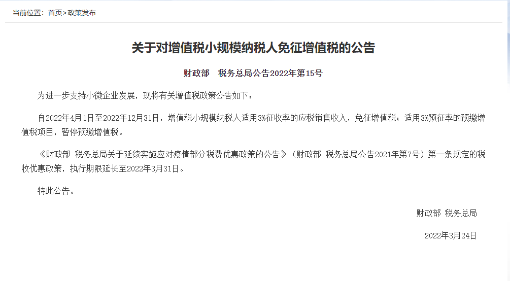 關(guān)于對(duì)增值稅小規(guī)模納稅人免征增值稅的公告
